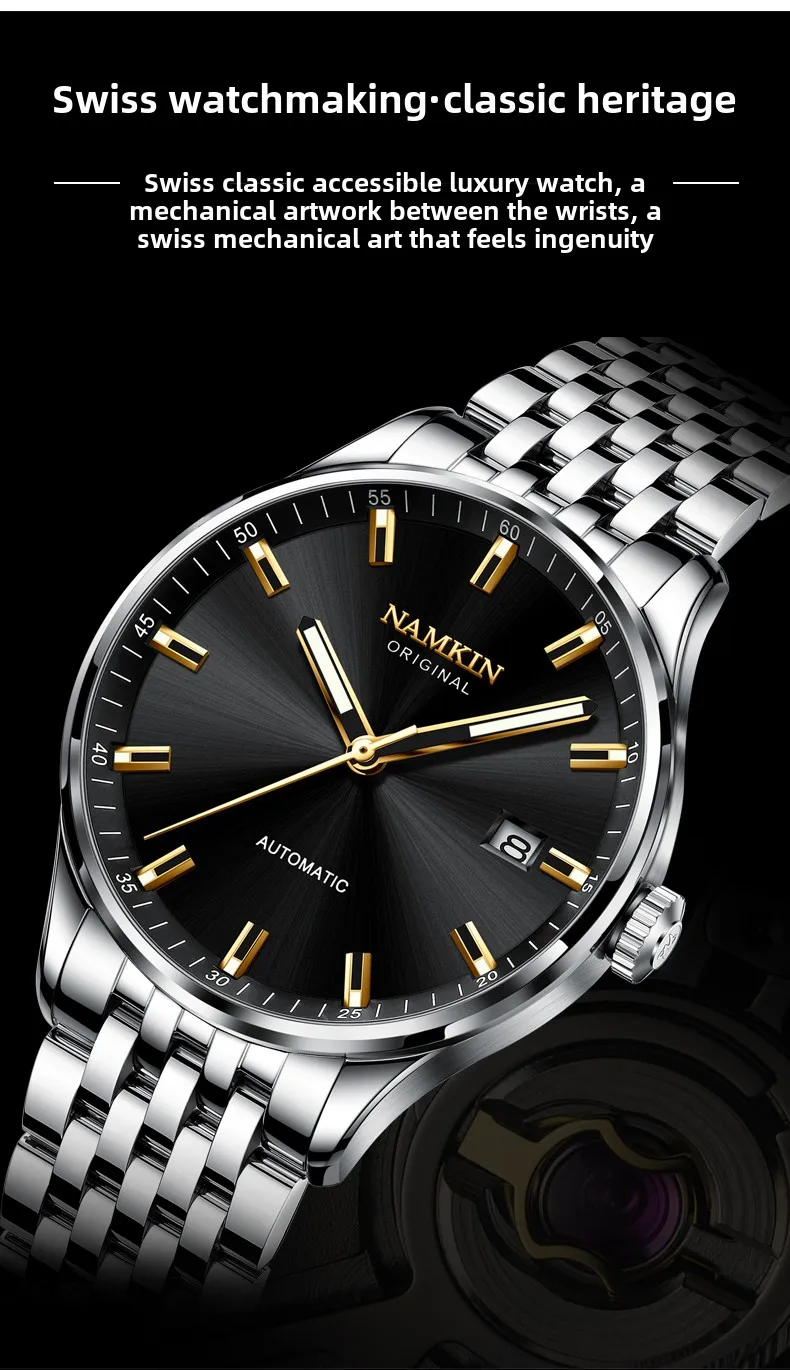 Wrist Silver Wing Pioneer! NAMKIN original timepiece, light sensitive dial with stainless steel chain strap