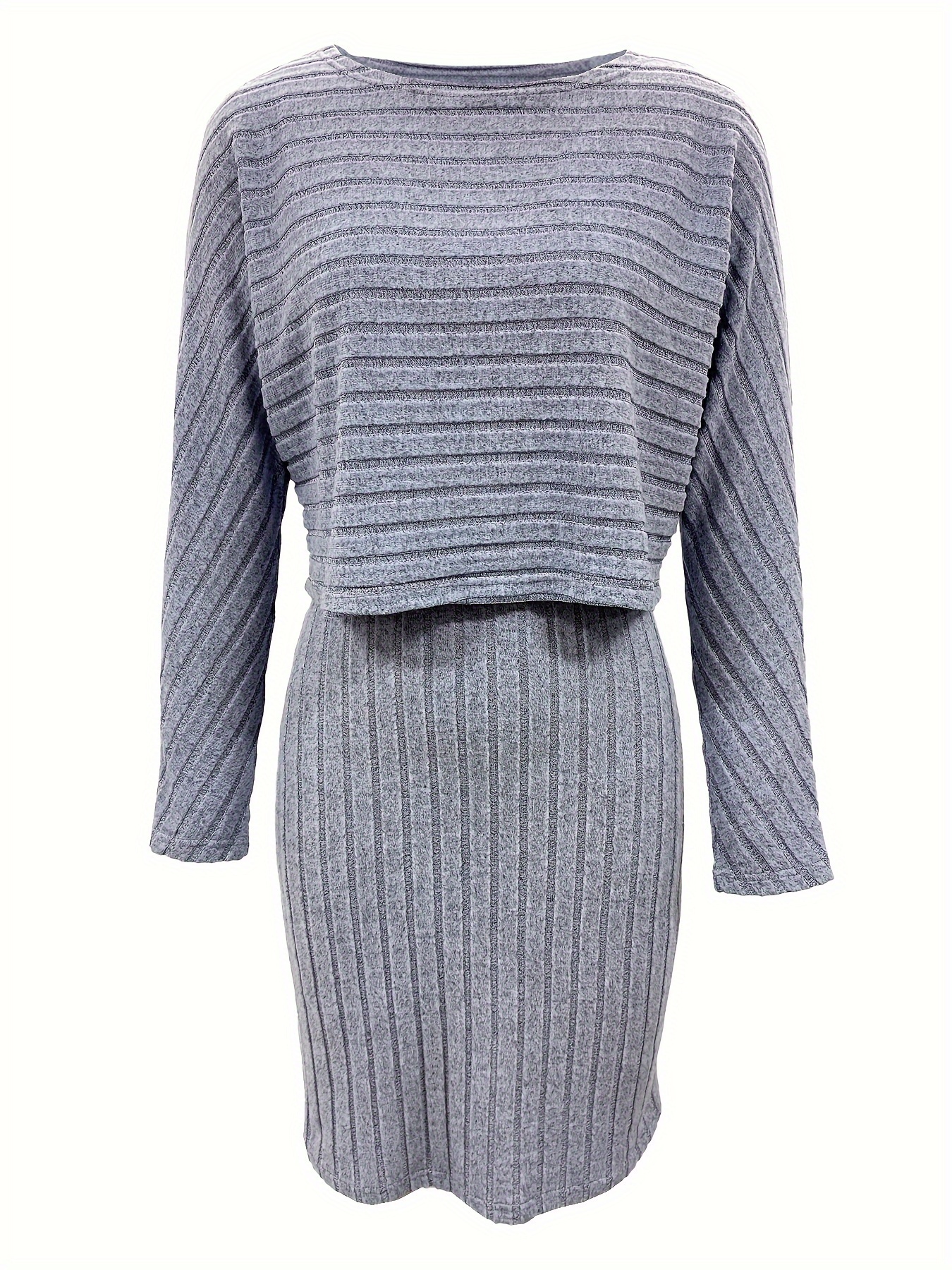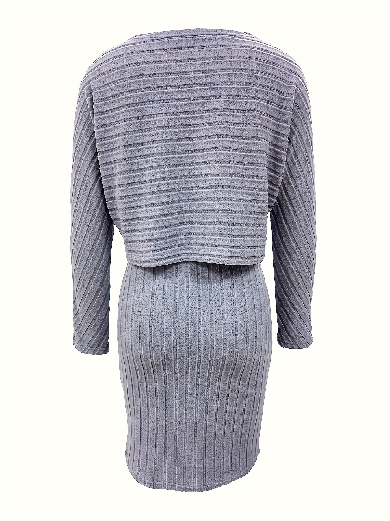 Y2K Solid Two-piece Dress Set, Long Sleeve Crew Neck Sweater & Sleeveless Ribbed Tank Dress Outfits, Women's Clothing